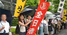 雨のなか全労連、全労連・全国一般から激励・連帯のエール