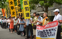 民間を代表して連帯あいさつに立った医労連の原書記次長は、「国立病院など公的医療機関に対しても賃下げ干渉が行われたが、現場から抗議し賃下げ反対運動を広げてきた。国立病院では実質的に職場に賃下げをさせていない。賃下げを許さない運動を一緒にとりくもう」と述べ、生協労連の桑田委員長は「憲法を無視し、ルールなく賃下げされてはたまらない。これは労働組合全体にかけられたたたかいだ。退職手当削減も地域経済を浸食している。消費税増税の露払いとしての賃下げ、退職手当の引き下げは断固として許せない。撤回求めてがんばろう」と訴えました。
