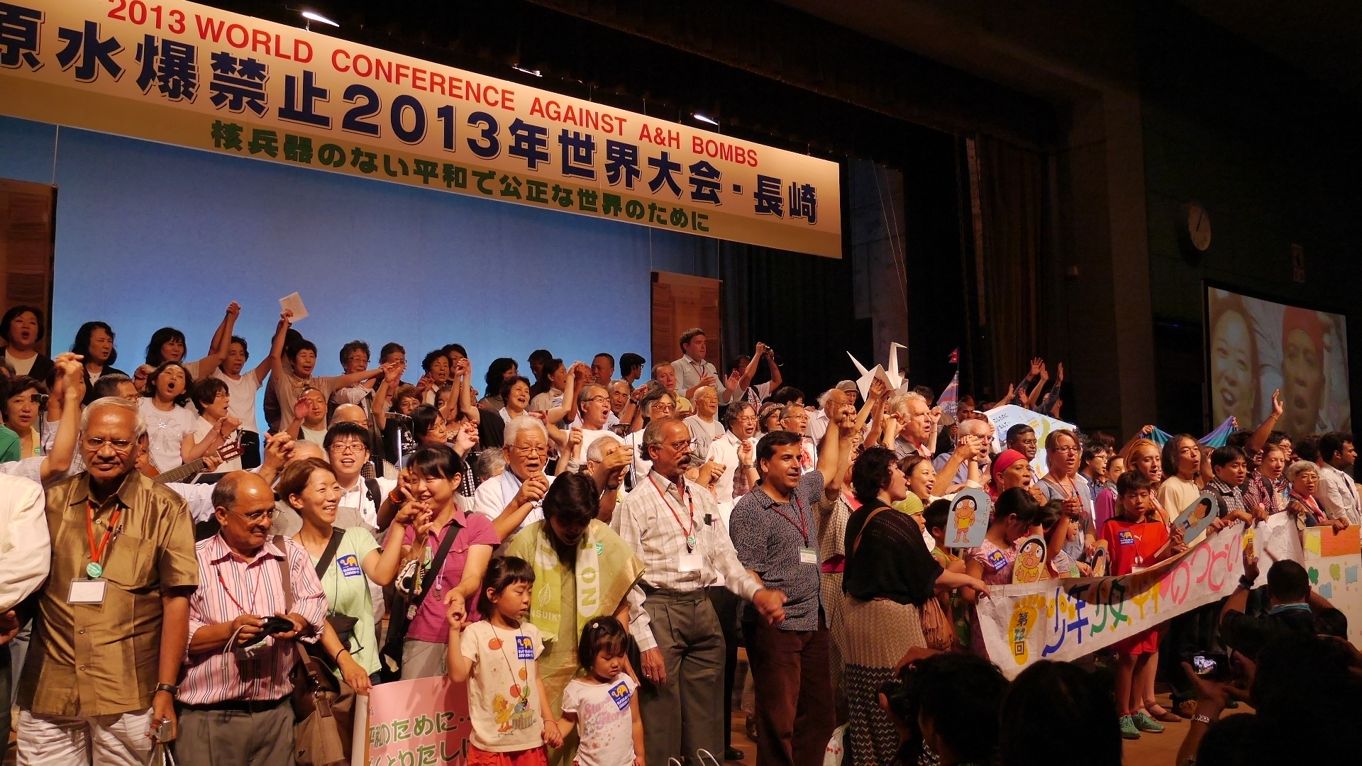 最後に、原水爆禁止2013年世界大会・長崎決議「長崎からのよびかけ」を採択。ヒロシマ・ナガサキをくり返すなの決意がこめられた憲法第9条を守り生かす運動を大きく発展させること、「核の被害者をつくらせない」の願いをひとつに、原発の再稼働と輸出に反対し、原発からの脱却と自然エネルギーへの転換を求める運動との共同を強めることを確認し、「ノーモア・ナガサキ!ノーモア・ヒロシマ!ノーモア・ヒバクシャ!長崎を最後の被爆地に―」の気持ちをひとつにしました。