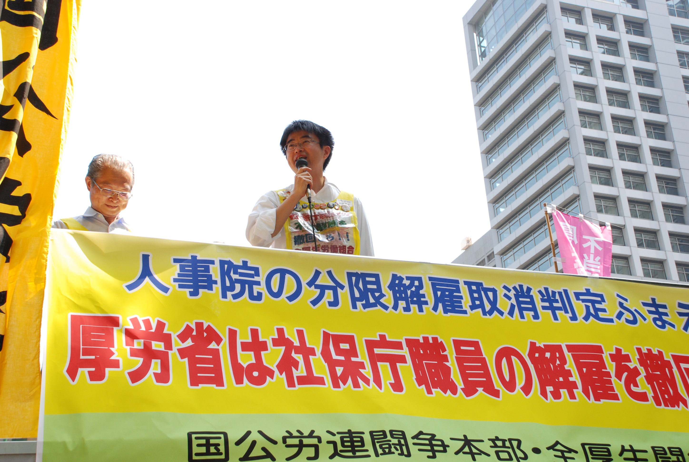 最後に、「人事院は公正・公平な判定を行え」「社保庁職員の分限免職処分は全員取り消せ」「国による不当解雇は許さないぞ」とシュプレヒコールを行い、要求実現までたたかう決意を固めました。