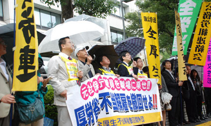 要求行動で主催者あいさつした国公労連の宮垣中央執行委員長は、人事院の判定結果について「京都の北久保さんは、分限免職の原因となった懲戒処分そのものが取り消され、香川の綾さんは、転任面接の評価が低くなった原因の病気休職が公務災害と認定されたのだから、分限免職を取り消されて当然だ。これで人事院に申し立てた71人中70人の判定があり、全体では3割4分にあたる24人(全厚生は39人中10人)の分限免職が取り消された。人事院が34%もの処分を取り消すことは前代未聞だ。いかに厚生労働省の分限免職が杜撰(ずさん)であり、解雇回避努力が尽くされていなかったかが明らかになった。北海道や京都の仲間はすでに裁判で不当解雇撤回を求めてたたかっているが、処分を取り消されなかった秋田の仲間も9月30日に仙台地裁に提訴し、東京の仲間も11月14日に東京地裁に提訴を予定している。たたかいは人事院審理から裁判闘争へと舞台を移すが、全厚生の当事者全員の不当解雇撤回を勝ちとるまで力をあわせてたたかおう」と呼びかけました。