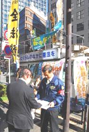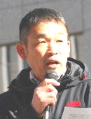 全司法・中矢委員長(写真左)は、「日本が攻められていなくても、関係国が戦争していれば、戦場に行き、武器・弾薬を補給し、攻撃されれば反撃する法律。 関係国とは、日米安全保障条約を結ぶアメリカのことであり、アメリカは現在も戦争を行っている国である。結果、日本は戦争に突入し、『殺し、殺される』危 険性が決定的に高まる」と指摘しました。また、裁判所職員として、「戦時中の裁判所は、戦争に反対する者を犯罪者として処罰する役割を担ってきた。戦後、 憲法擁護義務を持つ公務員として、憲法と法律に従って仕事をする裁判所職員として、『国民のための裁判所』の実現のため奮闘している。元最高裁長官も憲法 違反の法律だと主張している。全司法は、二度と戦争の奉仕者にならないという立場で奮闘していく」と決意をこめて訴えました。