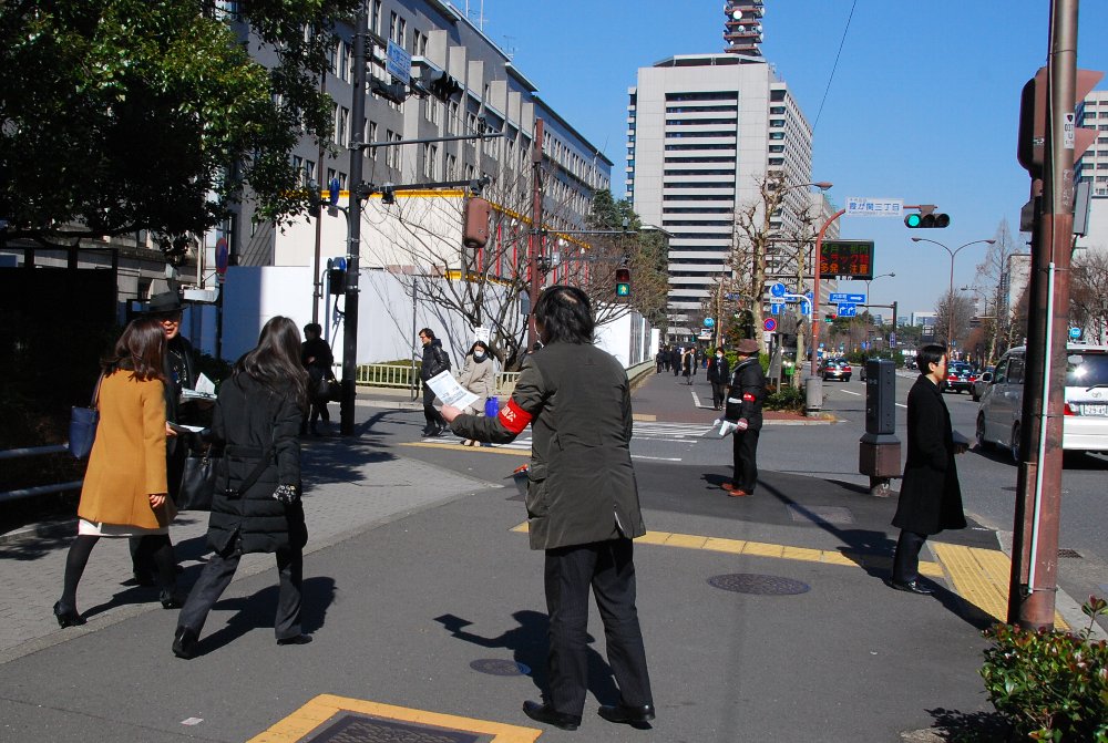 宣伝で全厚生の杉浦書記長(写真右)は、「安倍暴走政治を許してはならない。日本を『戦争する 国』にしてはならない。戦争法が成立し、殺し・殺される重大な危険が生まれている。民主主義の力で、この国の困難を乗り越え、希望をつくっていこう。平和 の願う気持ちを2000万人署名に託してください」と訴えました。また、年金業務の拡充を求め、国が行った乱暴な社保庁職員の解雇の撤回裁判闘争に支援を 呼びかけました。