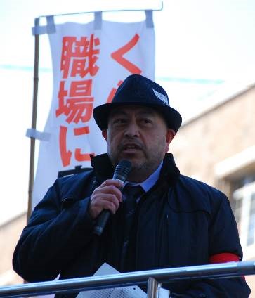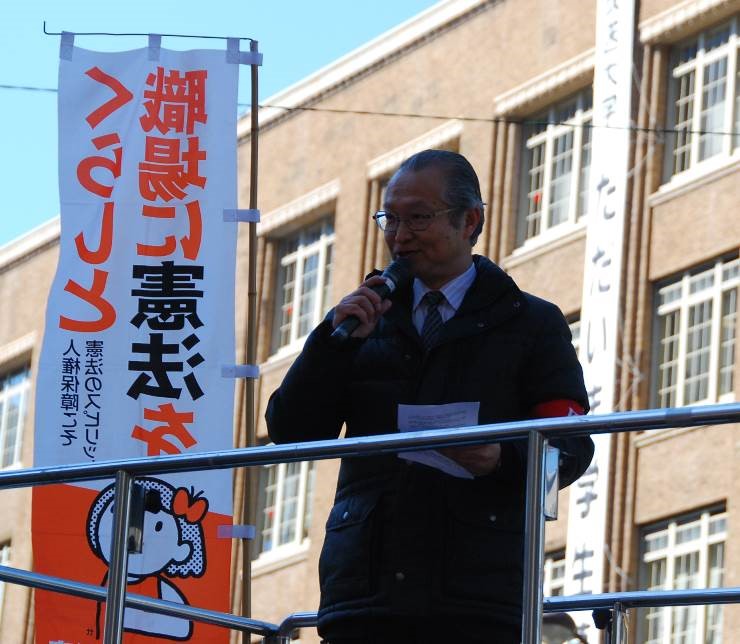 全法務の空副委員長 (写真左)は、「安倍内閣は、夏の参議院選挙で、改憲の発議に必要な3分の2以上の議席獲得し、明文改憲をねらっている。自民党の改憲草案の内容は、国民 の基本的人権を制限し、国が国民を守るのではなく、国民に国を守らせるもので、戦前の大日本帝国憲法の内容と同じだ。テレビでタレントの男の子が『僕たち が大人になる頃は、戦争に行かされるかもしれない』と話していた。子どもや孫を戦争に行かせてはいけない」と訴えました。