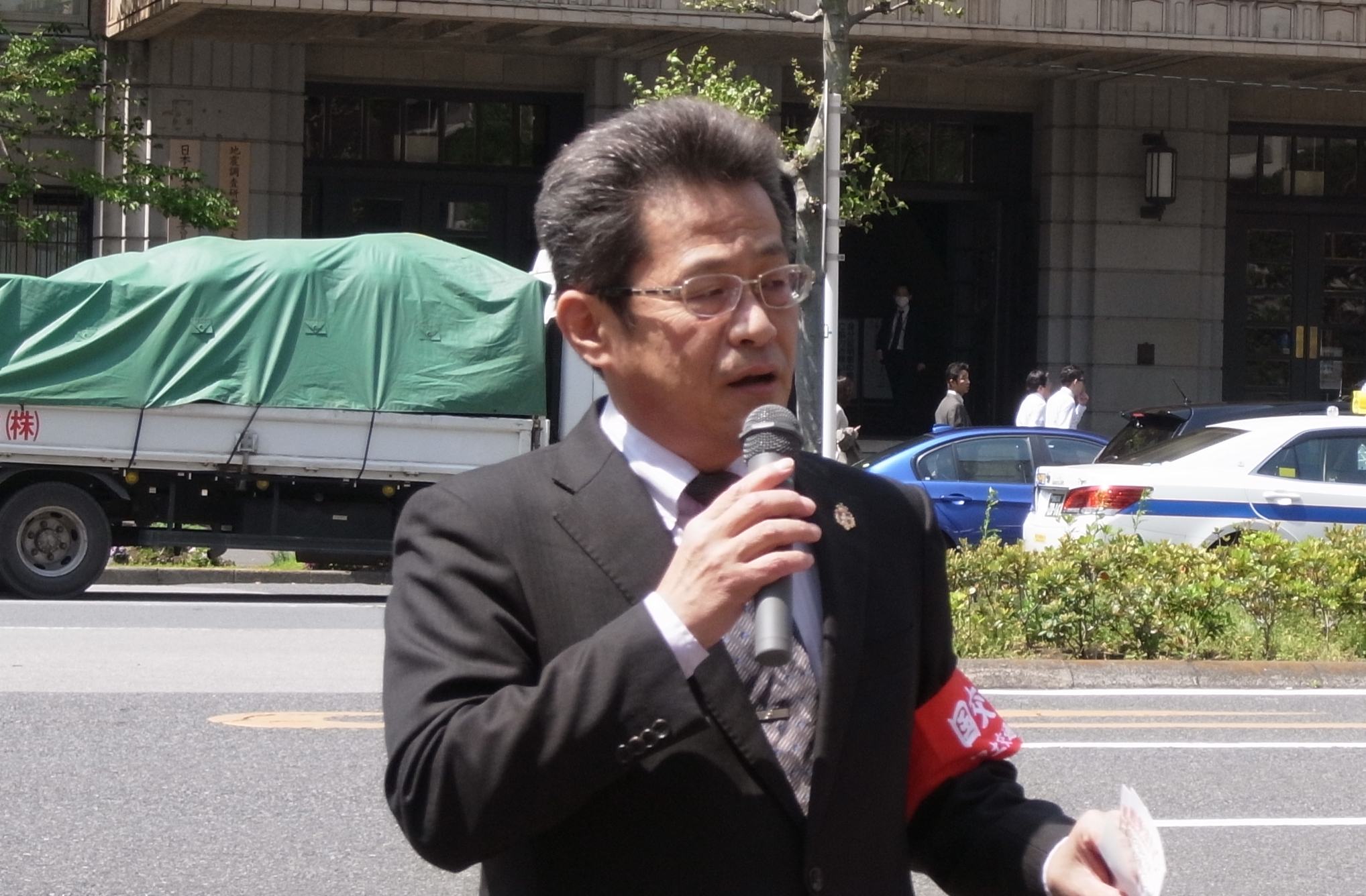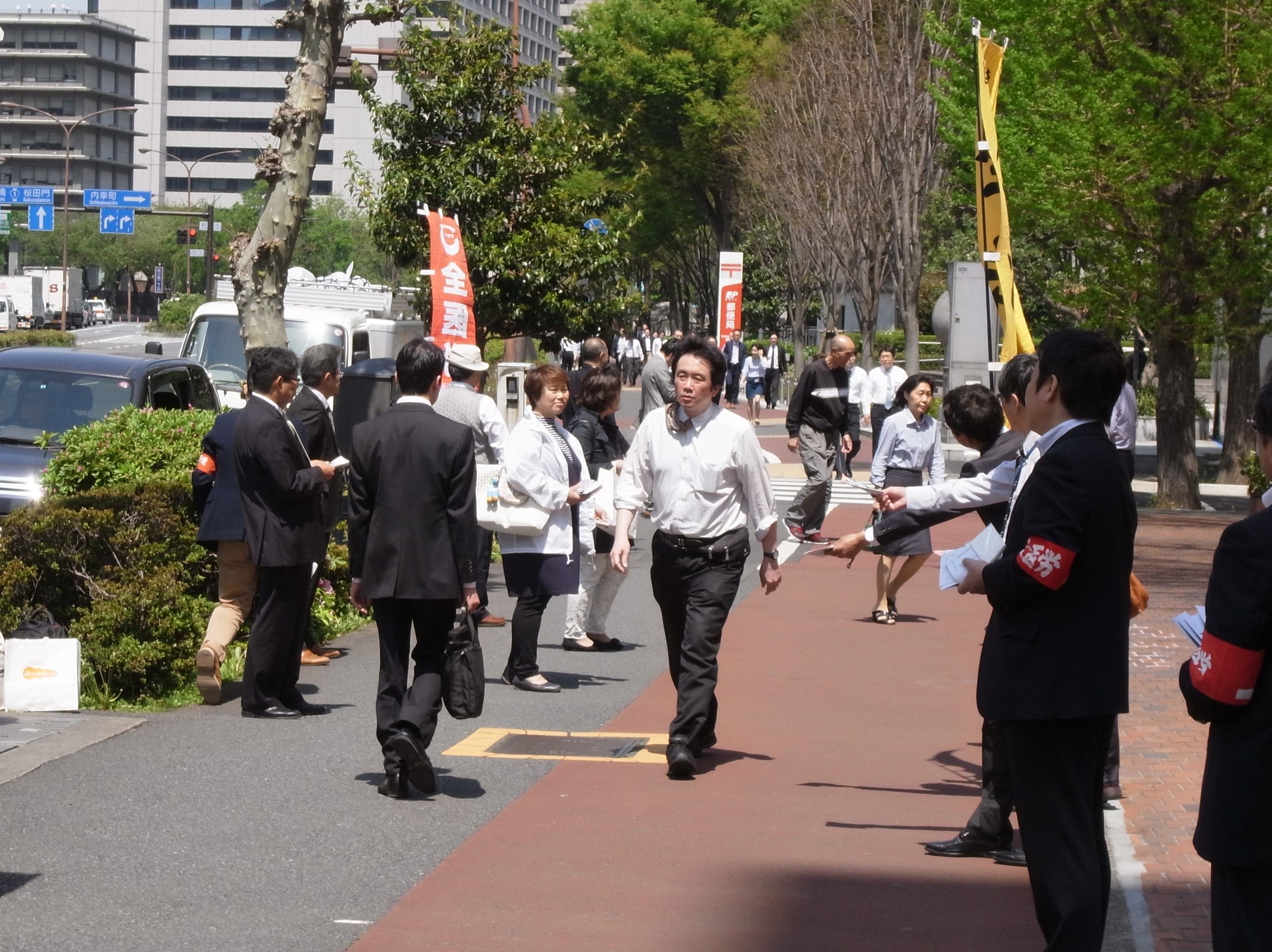 宣伝にあたってはじ めに、九州・熊本地方を中心とした大規模な地震により、多くの尊い命が失われたことにお悔やみを申し上げるとともに、大きな被害に遭われた熊本・大分のみ なさんに心からのお見舞いとあわせ、一日も早い復旧に国公労働者として全力をあげる決意をのべました。