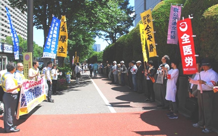 6月2日に社保庁不当解雇撤回裁判東京事案の第11回口頭弁論が東京地裁で開かれ、約60人が 参加しました。