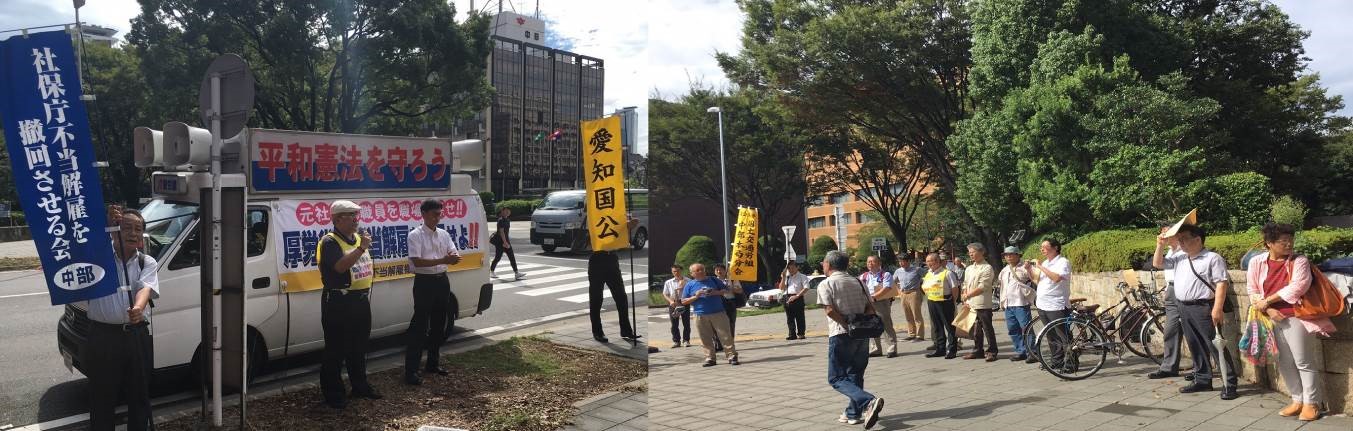 最後は、愛知支援共闘会議の榑松議長(愛労連議長)が「今回の裁判で国のいいかげんさがよくわかった。結局は、年金未納問題を末端の職員に押しつけた解雇にしかすぎないことが明白になった。国民の年金を守る職場をきちんとしなければならない。絶対にこの裁判に勝利しよう」と閉会のあいさつを行い「団結ガンバロー!」で締めくくりました。