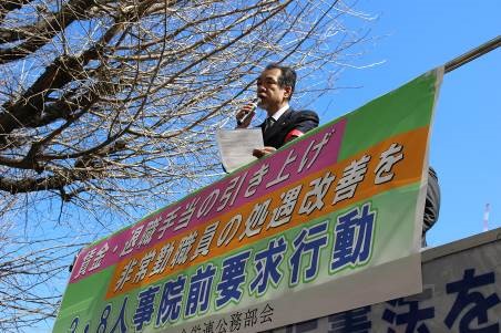 退職手当改悪阻止、地域間格差の解消などを求める人事院前要求行動