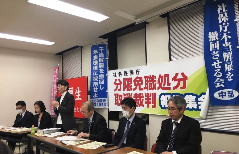 続いて弁護団から裁判の報告がおこなわれ、狩野弁護士は「前回の弁論では、社会保険庁の人事評価でどれくらいの評価を受けた人が厚労省に転任されているのか、原告よりも良い評価の人ばかりだったのか、という点について被告に釈明を求めた。裁判所も釈明するよう被告に促していた。ところが、被告は釈明に応じないと回答してきた。その理由は、社会保険庁の人事評価制度は国公法上の人事評価ではないから、転任手続きは『その他の能力の実証』すなわち面接評価と書類審査をもとに行ったのであり、なんら問題はないというもの。到底受け入れられない」と被告側の対応を疑問視したうえで、「社保庁の人事評価制度は国公法上の人事評価制度とほぼ同じで、評価基準も細かく公開していた。『その他の能力の実証』はそのような客観的な評価に基づいてなされるべきだった。しかし、転任面接はその場の印象により判断されたもので客観的な基準がない。そんなもので『その他の能力の実証』になるはずがない」と指摘し、分限免職回避努力義務が不十分であることを明らかにしました。