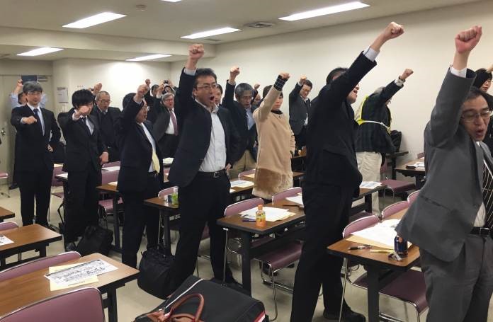 最後に、東北ブロック国公の伊藤議長が「風は、向い風から追い風に変わってきている。全国でたたかう多くの仲間を応援しよう!」と閉会のあいさつがなされ、団結ガンバローで締めくくりました。