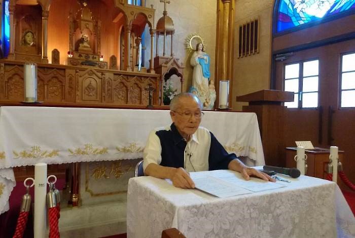 (写真右下)から、浦上教会の歴史と被爆体験をお話しいただきました。深堀さんは、14歳の時に学徒動員で三菱造船所にて被爆され、同時にご家族も亡くされています。浦上教会の歴史では、キリスト教への弾圧が繰り返されてきたこと(浦上四番崩れ)をお話しいただきました。また、被爆体験では、深堀さんご自身に被害はなかったのですが、ご自宅が浦上天主堂の裏手にあり、兄弟4人が亡くなられたとのことでした。