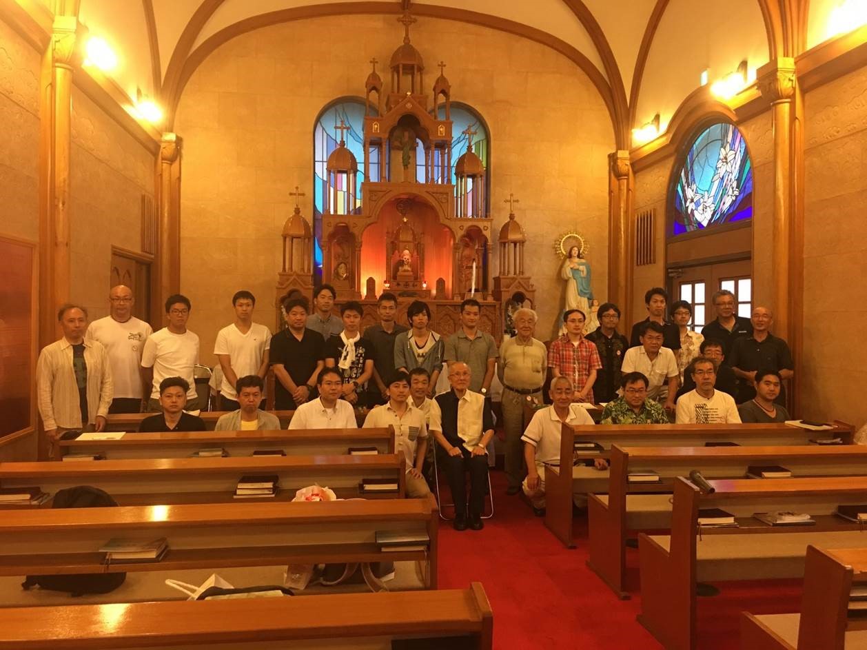 8月8日、長崎市にあるカトリック浦上教会(浦上天主堂)内の被爆マリア像小聖堂をおかりして、「国公労働者平和のつどい」を開催し全国から32人が参加しました。