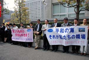 油流出事故が起きれば、被害拡大を防止するため緊急出動による油回収作業を行う。流出油の引火による火災に気を配りながらの作業をするので、心身ともに疲れるが、国民生活を守るとの思いから作業をしている。私たちの職場を正当に評価してもらいたい」と訴えました。