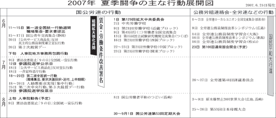 夏季闘争方針では、春闘の経過を踏まえ、(1)春闘の到達点を踏まえ人勧に向け要求と運動を決定する、(2)「構造改革」と公務員攻撃に対峙し、参議院選挙と一体でたたかう、(3)組財答申をふまえ規約改正、組織整備を行い、それに伴う検討課題について整理をする、(4)次年度の運動方針に引き継ぐとともに中期的な課題を明確化する、を4つの柱とし今夏季闘争に取り組むことを確認しました。