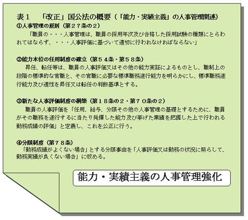 「改正」国公法の目的は、「再就職規制の見直し」と、「能力・実績主義の人事管理の強化」でした。