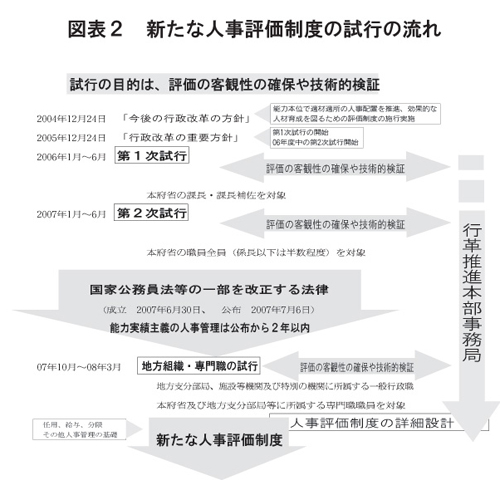 「人事評価の試行」は、「人事管理に活用できる評価手法を探る」という目的で、これまで2次に渡っておこなわれてきました。しかし、先の通常国会での国公法「改正」により、人事評価が「任用、給与、分限その他人事管理の基礎」として位置づけられたことから、試行の目的が、「能力・実績主義の人事管理の基礎」に変更され、本年10月から地方組織・専門職を対象に、新たな試行がスタートしました。