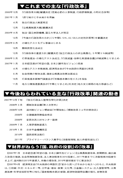 3、行政と独立行政法人の民営化、地方分権や道州制の問題点を国民的に告発する