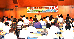 基調講演では、岡田知弘京都大学教授から、地域主権問題を考えるとき大事なことは、「国民の生活と地域がどのような状況になっているのかから見ることが大事」ということが述べられ、民主党の進める地域主権改革は、「義務付け・枠づけの大幅見直しで国の責任を放棄し、公共サービスの民間化・市場化をより推進しようとしている。その先行モデルは首長権限強化を狙う橋下大阪府政と河村名古屋市政だ」、「地域主権改革関連3法案は、国会で継続審議となっている、今後、憲法「改正」への動きを再始動させながら道州制への取り組みを本格化させようとしている」などと本質・狙いなどが話されました。
