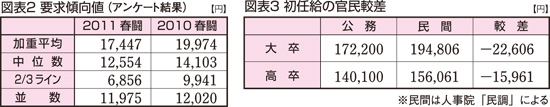 配分要求では、図表3のとおり民間との格差が顕著な初任給について較差改善につながる抜本的な引き上げを要求します。