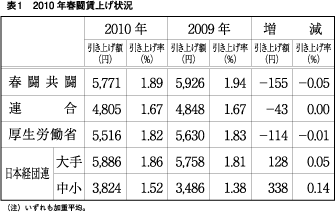 今年の民間春闘結果(表1)では、「賃金は現状維持」で決着したとみることができます。
