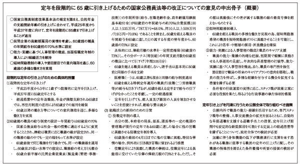 定年を段階的に65歳に引き上げるための国家公務員法等の改正についての意見の申出骨子(概要)