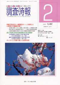 扉のことば 国民共通の「対抗軸」を明確に 国公労連中央執行委員長 堀口 士郎 風 紋 寒い日にはスープを 増田れい子 特集「歴史的かつ画期的なILO勧告」と公務員の労働基本権(T) 国公労連中央執行副委員長 山瀬 徳行 政府が進める公務員制度「改革」とILO結社の自由委員会勧告 国公労連公務員制度プロジェクト 公務員労働者の歴史からみた労働基本権闘争の軌跡 元国公労連中央執行副委員長 高松 克己 資料:ILO結社の自由委員会中間報告 委員会の結論・勧告=政府仮訳 国公労連行政研究推進集会−記念講演 日本大学商学部教授 永山 利和 雇用・地域経済問題から見た国の行政 全労連総合労働局長 寺間 誠治 キャラバン行動で築いた官民共同 近畿ブロック国公、九州ブロック国公、愛知県国公、宮城県国公 連載−永田町だより(36) ジャーナリスト 大川 正志 |