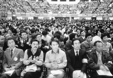 1985年5月17日、男女雇用機会均等法が成立した。国連の婦人差別撤廃条約の批准期限である85年までに雇用の男女平等法制定が求められていたが、「均等法」は昇進、昇格などの男女差別への罰則がないなど実効性が乏しいばかりか、女性労働者の時間外、深夜勤務などへの歯止めを奪う母性保護・健康破壊の労働基準法改悪を伴うものだった。「こうした母性保護の切り捨ては許さず、真の男女雇用平等を」と女性労働者のたたかいは大きな盛り上がりを見せた。とくに国公労連婦人協は、数次の全国上京団行動を含め国会の議員面会所を埋め尽くす要請行動を繰り返し実施し、運動に大きく貢献した。