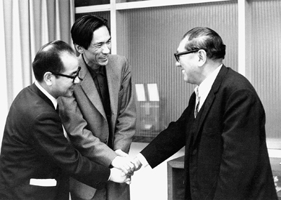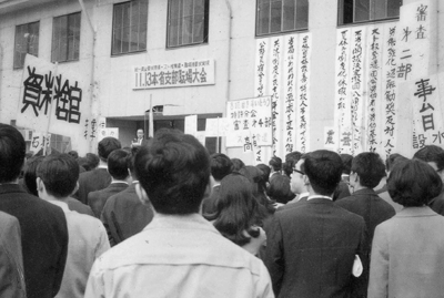2000人が結集し、“2・1ゼネスト以来の空前の大集会”となった全商工(現・全経済)本省支部11・13職場大会(早朝スト)=1969年11月13日、東京・霞が関の旧通産省中庭