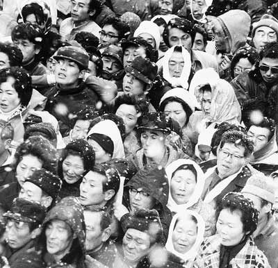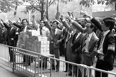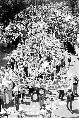 約3000人の中央集会を開いた=1976年3月26日、旧通産省(現経済産業省)本省中庭