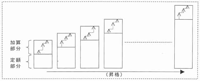 b.能力等級に応じた「定額部分」と、毎年の職員の評価に応じて昇給する「加算部分」の合計額