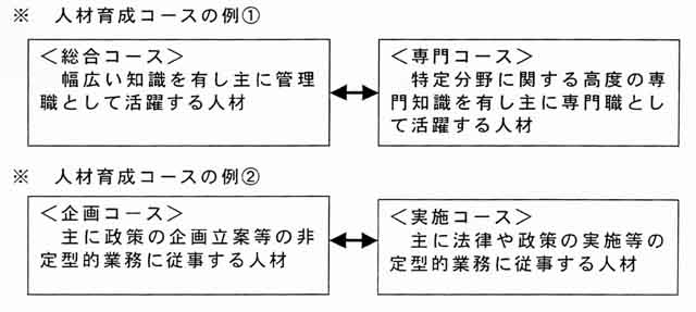 2) 各職員の人材育成コースは、職員の希望・適性や組織のニーズ等を踏まえて人事担当部局が決定する。なお、人事育成コースの決定に当たっては、必ず管理者と職員で話し合いを行う。