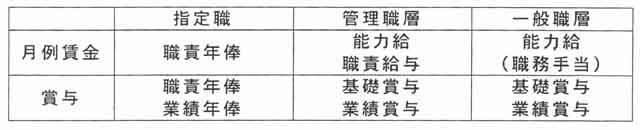 注1)指定職の給与は年俸制とする。職責年俸と業績年俸の合計額で年収を管理し、月例賃金と賞与とに分割して支給する。