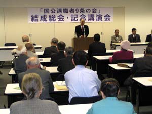 今年1月末から準備されてきた、「国公退職者9条の会結成総会」が4月7日、東京・霞ヶ関にある商工会館で開かれ、81人が出席しました。2ヶ月という短い期間に目標の100人をこえる177人の賛同署名が寄せられ、カンパも多く寄せられています。全建労退職者の会は、この日に合わせ役員会を開催、大分・長野県在住の役員が出席、また全通信の元副委員長はこの結成総会のために岐阜から出席しました。