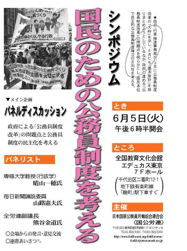 「公務の公共性を考える集会」を開催★構造改革の本質解明、公務の必要性に確信(「国公FAX速報」2005年6月7日付) |