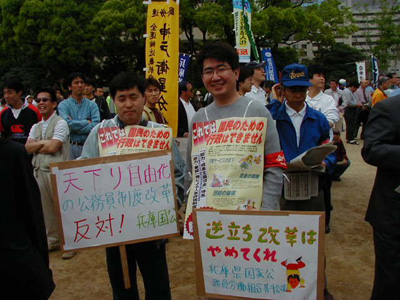 総人件費削減や人減らしなどのリストラ「合理化」のため、導入されてきた民間の成果主義・人事管理を、行革のために公務に持ち込もうとする公務員制度「改革」の不当性は、「検討案」でさらに明確になりました。同時に、憲法でも保障している、労働条件にかかわる「交渉」という労働者の基本的な権利を、意図的に無視して「改革」をすすめる政府・事務局の不当性も明らかになっています。