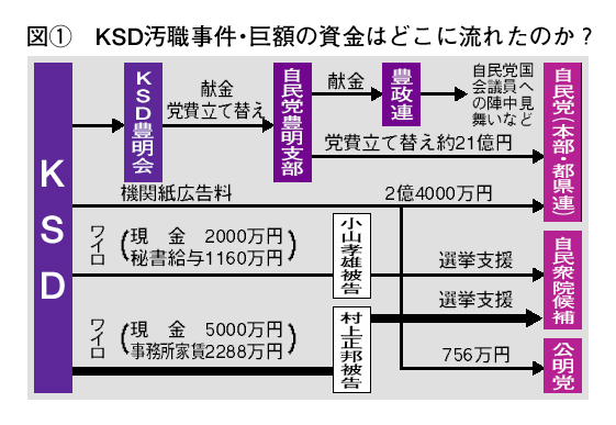 KSD汚職、どんな事件だったか覚えていますか?巨額の資金が、自民党や公明党に流れ込みました(図1)。
