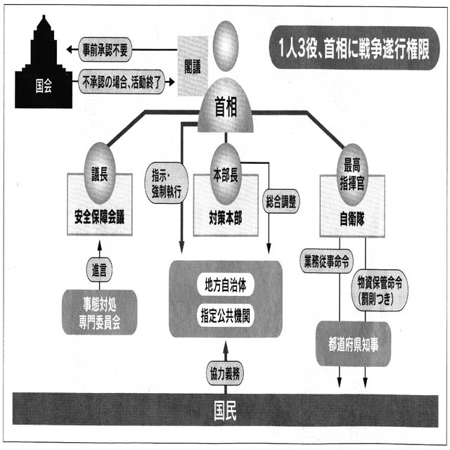 〇国民に戦争協力を強制、自治体が従わない場合は首相が「直接執行」