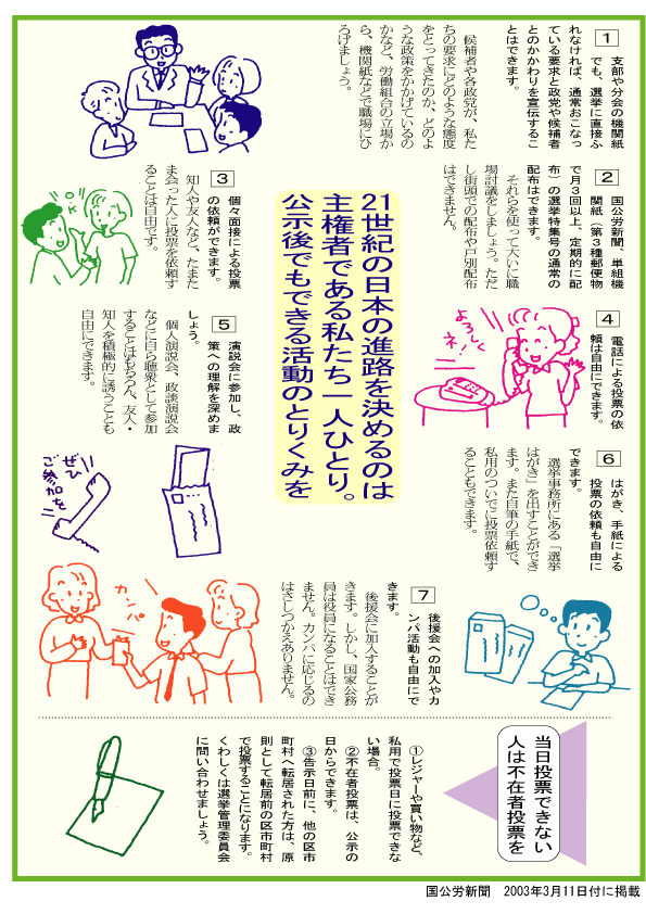 4月13日投票(都道府県知事など)、4月27日投票(町村長など)でたたかわれる一斉地方選挙が目前に迫っています。「選挙には関心がない」、「地方の選挙は国家公務員には関係ない」と思っているあなたに、ぜひ読んでもらいたい特集です。