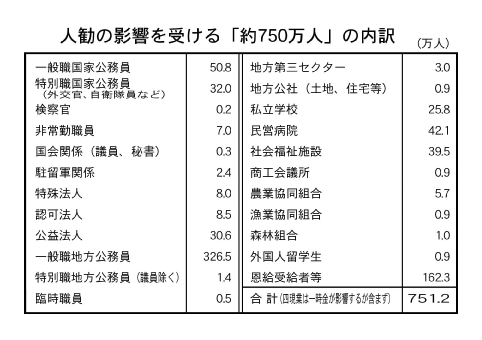 特に、地方財政難のもとでの義務教育国庫補助金削減などは、教育公務員をはじめとする地方公務員の賃下げ攻撃などに直結する危険性を持っていることから、「地域に勤務する公務員の給与のあり方問題」とも関連させて、地域間格差の固定化・拡大に反対する運動での「750万労働者」(表1)との共同拡大の追求を強調しています。