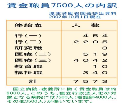 第2に、独立行政法人国立病院機構への移行に際して、7500名の賃金職員(表2)の雇用継承を求める運動を、公務リストラ反対の産別運動として重視していきます。