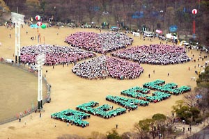 | ●占領やめよ! 自衛隊撤退せよ! イラク侵略1年 3.20国際行動 イラク侵略戦争開始から1周年の3月20日、イラク占領の早期終了を訴える国際共同行動が世界各地で開かれ、数百万人が参加しました。日本では、全都道府県の400カ所以上で数十万人が行動しました。 ![]() 写真:「平和の花を咲かせよう!」と1万人の人文字にとりくんだ大阪の3.20行動 |