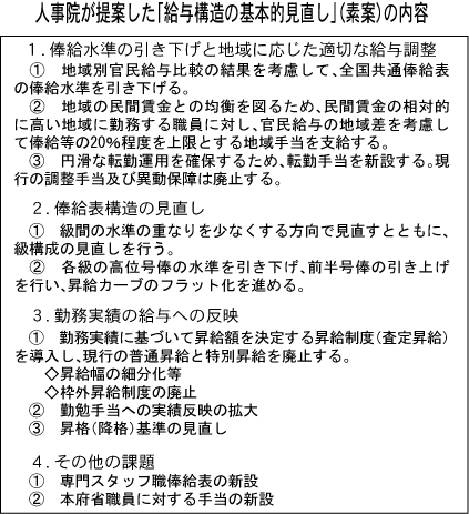 | ●許すな!賃下げ・給与構造の改悪 生活改善のたたかいを地域から ◇低所得者の増加 財界の「春闘終焉宣言」ともかかわって、民間賃金が変化しています。 一つは、雇用形態の変化(パート、臨時、派遣、請負など非正規労働者の増大)もともなうリストラ「合理化」のもとで、産業間、企業規模間などの賃金格差は是正されず、むしろ低所得者が増加しています。 二つは、大企業を中心に、成果主義の導入が乱暴に進められ、そのことと相まって、特に高齢者層の賃金切り下げが進んでいます。 ◇重要性増す最賃闘争 三つには、生活保護水準さえ下回る低賃金の実態が明らかになりながら、その是正に政府も企業も後ろ向きで、賃金の「底割れ」が懸念される状況です。 これらのことから、賃金底上げ、最低賃金引き上げの運動は、いよいよ重要です。 組合員の切実なベア要求を掲げ、政府に回答をせまるという原点は大切にしつつ、全労連規模の最低賃金闘争などでの役割発揮を賃金闘争の中心課題としてとりくみます。 ◇賃下げとなる「給与構造見直し」反対 人事院が、11月2日に国公労連に「素案」を提示した「給与構造の基本的見直し」(下表参照)は、民間賃金制度の「変化」を直接的に公務員賃金に反映させるものです。同時に、国、地方を通じた人件費抑制をすすめ、消費税増税をはじめとする国民負担増の「言い訳」づくりの意図も見え隠れしています。 ![]() 地域や機関、世代間の賃金格差拡大を意図した攻撃にたいし、「賃下げとなる給与構造見直し反対」を確認し、一部の職員への賃下げの集中を許さないたたかいを強めます。 また、「給与構造見直し」を先行させて、公務への「成果主義」導入をねらう動きに対し、短期評価の賃金反映を許さない当局追及を強化します。 政府は、「三位一体改革」とも連動させ、地方公務員についても、国に準じた「給与構造見直し」を迫っています。 また、独立行政法人など国の「財政統制」が及ぶ法人等にも、人件費抑制を迫っています。それだけに、人事院勧告の影響を受ける750万労働者との共闘を飛躍的に前進させることが大切です。 |