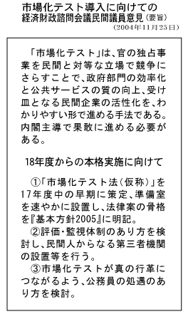 | ●ストップ!公共サービス商品化 ◇公共サービスへの全面攻撃 公共サービスへの全面的な攻撃が押し寄せています。医療、介護、教育分野での営利企業の参入促進や郵政公社の民営化、独立行政法人の非公務員化、さらに「市場化テスト」(官民競争入札)まで動きはじめています(下表参照)。 ![]() ◇何でも民間化の市場化テスト 「市場化テスト」とは、国の実施事務を競争入札により、官業(公務)の委託先(独法・特殊法人や営利企業)、あるいは譲渡先(官か民か)を決めるもの。対象事業は、すべての「官業」で、「なんでも民間化」の攻撃です。 契約期間ごとに事業者が入れ替わることでの専門性の低下(職員の訓練や経験の蓄積、質の確保への影響)、継続・安定なサービス提供という公共業務の不可欠の要素の形骸化、公務員の雇用問題の発生などの問題が懸念されます。 企業にとってうまみがなくなれば、事業(所)廃止という恐れもあります。 政府の規制改革・民間開放推進会議は、予算を国が措置し、守秘義務を課し、贈収賄罪を適用するから問題は生じないといいますが、それではすみません。 ◇問題を象徴する郵政民営化 公共サービス切り捨ての当面の焦点が郵政民営化です。通常国会への法案提出が閣議決定されています。 郵政民営化によって、採算性の悪い地域の窓口が閉じられ、貯金もできない、郵便もとどこおるなどの状態が懸念されています(下表参照)。「三位一体改革」とならぶ、地域切り捨ての悪政の象徴でもあります。 ![]() ◇公共サービス商品化反対キャンペーンで世論喚起 競争による効率化という市場原理を優先すれば、弱者切り捨て、一極集中の歪んだ不公正な社会となります。「競争より公正な社会を」をスローガンに、公共サービスの商品化反対キャンペーンを全国で展開します。 社会保険業務などの「市場化テストのモデル事業化」強行を許さず、「市場化テスト法(仮称)」の制定や郵政民営化法案の成立反対を宣伝や要請行動で、国民世論に徹底して訴えていきます。 |