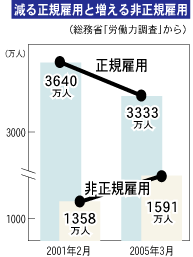 ●にわかに“総人件費削減の大合唱”「2年ぶり3度目のマイナス勧告(▲0.36%)と、本俸を4.8%引き下げなどを内容とする給与構造勧告でも総人件費削減は不十分」そんな動きが政府・財政当局から出はじめています。マスコミも、「官の給与改革・政治決断して削減せよ」(8月16日・毎日新聞)、「公務員人件費・各党は削減へ目標と手順を示せ」(同日・読売新聞)など、総選挙ともかかわって、「総人件費削減キャンペーン」がくり広げられています。 ◇一時金0.05月改善「凍結」? 8月15日、政府は、給与関係閣僚会議を開催しています。その場では、「総人件費削減を念頭に議論を」とする谷垣財務大臣の発言もあって、勧告取り扱いの方向すら確認されていません。マイナス勧告で、国は約50億円の人件費削減と言われていますが、一時金0.05月の改善を見送れば、約230億円の削減になるという思惑が見え隠れしています。 ◇定員の純減目標も俎上に 8月11日、政府は、06年度予算の概算要求基準を決定しました。同日、麻生総務大臣は、06年度の増員要求を「前年並み」とすることを求めるとともに、「5年間・10%」の定員削減計画を別途策定することを明らかにし、同時に純減目標策定の姿勢も示しました。 概算要求基準決定に先立つ7月27日、政府の経済財政諮問会議に提出された民間議員の意見書では、「給与の一段の見直し」と「国民が納得する『純減目標』設定」を求めています。賃金と定員の双方を「削減」して「(国の)総人件費削減」をおこなうための「基本指針」を今秋にも決定し、純減目標の具体化を06年度予算査定と一体で進めようとする動きを政府が強めています。 ◇狙いは「増税」の突破口 政府が、6月に決定している「骨太方針2005」では、郵政民営化の次の「構造改革」を、人件費削減などの歳出削減と、増税の方向を打ち出しています。「削減なくして増税なし」だと言うのです。総人件費削減の目的は明白です。 選挙に向け、民主党は「(国の)総人件費2割削減」や、所得税控除の見直しをマニフェストに掲げようとしています。「骨太方針2005」と大同小異です。 増税の突破口としての総人件費削減の是否が、総選挙の争点の一つに浮上しています。総選挙の結果は、勧告の取り扱いや年末の定員、組織の査定などに直接影響します。 「人べらしも賃下げも」の公務員攻撃と対峙する国公労働者のとりくみが問われています。 |