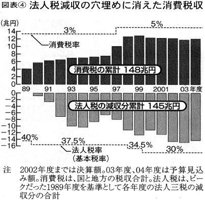 ◆小さな政府は大きな国民負担大増税・医療改悪NO!06春闘期には、税制では、定率減税の廃止(06年1月で半減、07年1月で全廃)が、社会保障改悪では70歳以上の高齢者に焦点をあてた医療制度改悪が焦点です。しかし、いずれの制度改悪も、隠されたねらいがあります。◇サラリーマン増税、消費税増税の地ならし総選挙で自民党が「サラリーマン増税はしない」と公約したこともあって、給与所得控除の「見直し」などは先送りされましたが、政府は、消費税率の引き上げも含めた大衆増税にむけた地ならしをあきらめた訳ではありません。なぜ、給与所得控除や消費税率引き上げが狙われるのでしょう。理由は簡単です。不安定雇用が増大する中で、いまの税制のままでは納税者に片寄りがでること、税や社会保険料は企業のコスト、とする主張を財界が強めているからです。 消費税が法人税引き下げの「穴埋め」に使われてきた経過からも、財界の本音は伺えます(図表4)。 ![]() ◇高齢者いじめの医療改悪は企業負担軽減目的医療改悪では、70歳以上の医療費自己負担の引き上げ、75歳以上の高齢者を対象とする新たな「医療制度」の新設という給付の抑制と、「経済規模に照らし合わせた医療給付の規模の見通し」を示すこととし、実質的に「総額管理」を盛り込み企業負担軽減の道筋をつけようとしています。すでに、05年10月からは介護保険が改悪され、本人負担が大幅に引き上げられ、04年に改悪された年金では、毎年0.9%ずつ年金給付額が引き下げられ、踏んだり、蹴ったりの高齢者いじめです。 ◇「小さな政府=大きな国民負担」の訴え広げよう「民間企業のリストラに学べ」といって、公務員バッシングを強めているのは政府と財界です。大企業は、税金も社会保険料も払いたくないからです。「小さな政府」とは、大企業・財界が求める政府です。国民に負担を強いるのが「小さな政府」です。「小さな政府」反対、企業は税や社会保障で社会的責任をはたせ(図表5)、の世論を広げていくことが、06年春闘の課題です。 組合員一人5名を目標にとりくんでいる「二つの署名(医療・増税)」の完遂をめざしましょう。 2月中下旬の地域総行動をはじめ、「公共サービス商品化」反対キャンペーンとも結合した宣伝・要請行動などにとりくみましょう。 ![]() |