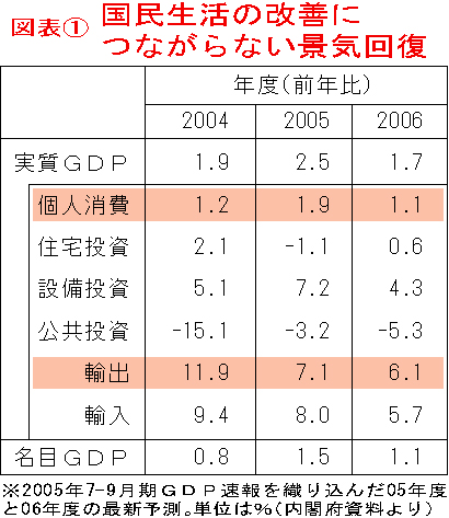 ◆STOP! 行革推進法案3月10日、小泉内閣が重要法案と位置づける「行政改革推進法案」が閣議決定され、国会に上程されました。同じ日に上程された「公益法人改革関連法案」や、2月10日の「市場化テスト法案」とあわせ、「行革関連3法案」として、衆議院の「行革」特別委員会で審議がおこなわれます。小泉「構造改革」の継続を宣言する「行政改革推進法案」と「市場化テスト法案」について、その内容と問題点を明らかにし、両法案の成立に反対するたたかいの強化を呼びかけます。 ◇国民そっちのけ、企業のための「行革」◇「小さな政府」づくりが自己目的化「行政改革推進法案(簡素で効率的な政府を実現するための行政改革の推進に関する法律案)」は、昨年末に政府が閣議決定した「行政改革の重要方針」をそのまま法律にしたものです。法の目的などを規定する「総則」、「行政改革」の重点分野ごとに改革の方向を示す「改革の基本方針」、「行政改革推進本部の設置」の3章で構成されています。 「総則」では、「簡素で効率的な政府を実現することが喫緊の課題」と規定していますが、どのような理由で「喫緊の課題」なのかは明確ではなく、「小さな政府への改革」が自己目的化しているようです。 ◇国際競争力強化のための「行革法案」 「行政改革」は「我が国の国際競争力を強化」するため、「民間活動の領域を拡大」し「行政機構の整理、合理化の措置を講じて国民負担の上昇を抑える」ことを中心におこなうよう規定しています(第2条)。行政は、国民の暮らしや命・安全を守ることが役割、という考え方を否定し、「国際競争力の強化」が最大の行政課題と「宣言」する条文であり、「行政改革推進法案」の最大の問題点です。 ◇「小さな政府」で企業栄えて民滅ぶ 「国際競争力の強化」は国民生活の改善に結びついていません。図表1にも見られるように、景気が回復したと言いながらその「果実」は輸出産業が受け取り、個人消費や政府支出にはほとんど影響していないからです。 「国際競争力強化」の施策は、家計から企業に「所得を移転」させる施策です。「競争力強化」も目的に、1991年から「ゼロ金利政策」がとられましたが、この15年間に家計が受け取れなかった利息は283兆円にのぼります。一方で、企業が免除された利子は260兆円、銀行などの金融機関は95兆円も利子所得を得ているのです。 これらの点も参考に、小泉「構造改革」のもとで「企業栄えて民滅ぶ」状況が生まれていること、「小さな政府」でそれがもっと深刻になることを、行政の実際から明らかにし、国民世論にその問題点を訴えることが、いまこそ求められています。 ![]() |
