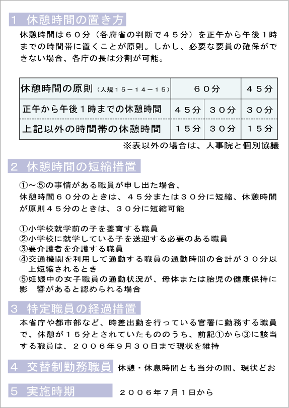 人事院は4月25日、休憩・休息時間の「見直し」に関する運用通知を発出しました(図表)。これは、3月の人事院規則「改定」を受けたものです。